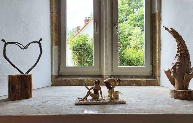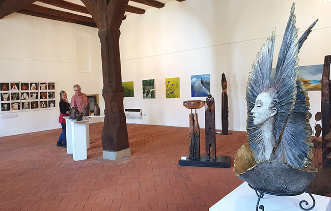 Unter dem Titel „Gute Aussichten“ haben wir – vier Künstler*innen aus Schaumburg – im Kloster Möllenbeck unsere Arbeiten aus den Bereichen Malerei, Pappmaché, Holzskulpturen und Schmiedekunst präsentiert.