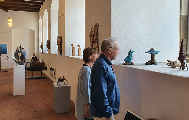 Die Ausstellung wurde am 03.07. eröffnet und erfreute sich schon ab dem ersten Wochenende großem Interesse der Öffentlichkeit. Auch das wunderschöne Ambiente der Kloster-Anlage mit einem wunderbaren Biergarten lockte bei gutem Wetter viele Besucher an. Wir Künstler freuten uns über reges Interesse an unserer Ausstellung und durchaus positive Resonanz der Besucher.