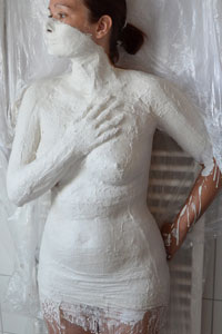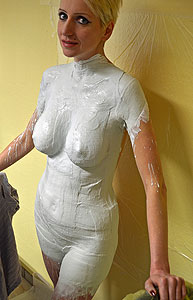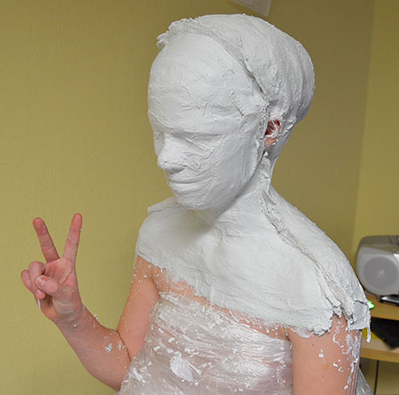 Für die Pappmaché- und Papiertorsi dient eine Körperabformung aus Gipsbinden als Form. Aus einer Gipsabformung (Negativ oder Positiv) kann man in der Regel mehrere verschiedene Papierabformungen erstellen, ohne dass sie dabei zerstört wird.
