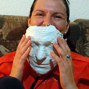 Abnehmen der Negativform mit Gipsbinden in Bildern: